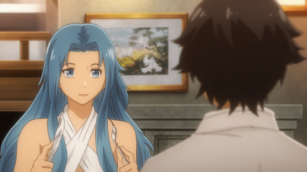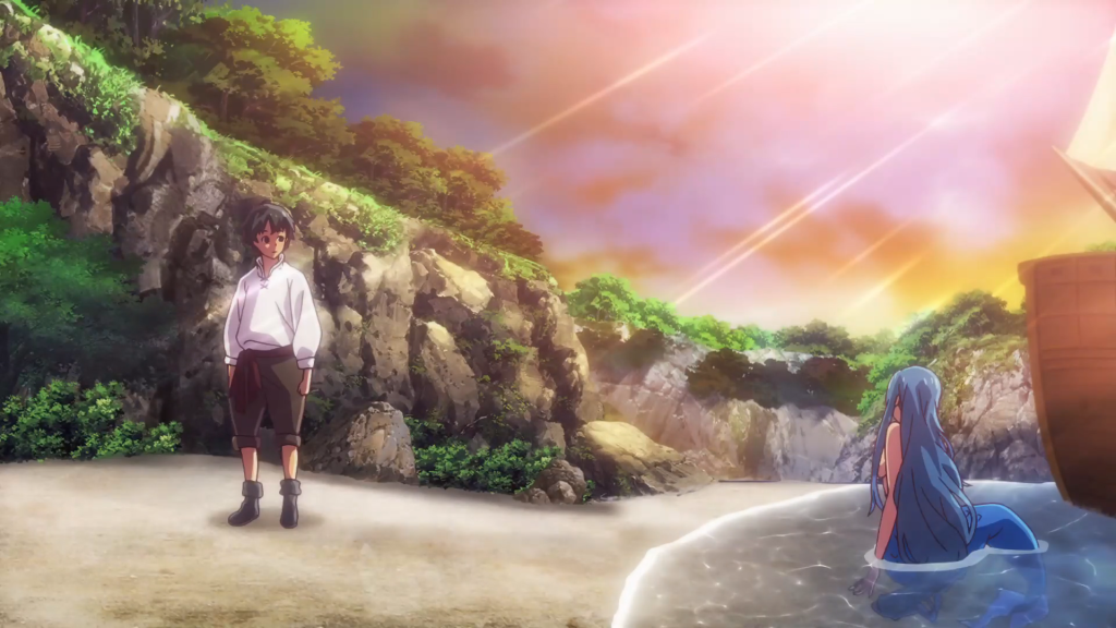 I suppose it was inevitable that we’d see romance blossoming at Nekoya and I think this vignette pulled it off very well. The circumstances are pretty crazy with the young sailor Roukei (Yoshitsugu Matsuoka) being saved by Arte (Ayaka Suwa), a mermaid who just so happens to know of Nekoya’s existence. The cynic in me wonders if Arte was actually hoping she will run into a sailor with money. I mean….the show does imply that Arte hasn’t visited Nekoya for a while since mermaids generally don’t use money. And I’m sure she saved Roukei out of the kindness of her heart but money is the first thing she asks of him when he repays his debt to her…..