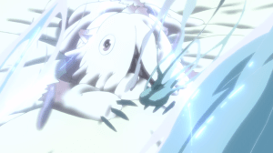 It’s amazing how despite knowing how dark this show is, I am still never prepared to sit through anything it throws at me. I knew going in, Nanachi and Mitty’s past would not be a pleasant one but it was still tough to sit through. The atmosphere is very much like that of a horror film; the nightmare fuel is saved for last but it’s the build-up that keeps you tense and makes the fuel all the more effective. Even when I expected Mitty’s transformation to be grotesque, the reality really does surpass the imagination. I just couldn’t contain myself seeing a little anime child mutate into a horrible blob of flesh. And I think what makes the scene even crueler is the fact that the transformation was the act of one really messed up White Whistle. It’s admittedly the only way you could justify having little kids emerge from the final layer of the Abyss but the confirmation that it was a man who subjected them to such an ordeal is still messed up.