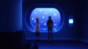 To be straight to the point: I really enjoyed the second episode of Just Because!, perhaps a bit more so than the premiere. Here, we’re presented with Eita’s little reunion with Mio though that event plays out within an even larger one: Haruto’s unsuccessful attempts to confess to Hazuki Morikawa, one of the brass musicians we sat last episode. Actually, that’s somewhat unfair because while Haruto does screw up his first attempt in typical teenage fashion, he does salvage it a bit by setting up a group hangout at the aquarium with Hazuki and a friend of hers invited (and Eita and Mio dragged into it). That plan probably could’ve worked but unfortunately for Haruto, Hazuki gets pressured by her two little brothers to take them to the trip as well.