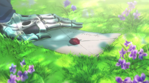 Curiously, the song is sung by Erica’s seiyuu, Minori Chihara. It’s probably a coincidence but it’d be neat if it was intended for one of the first POV characters to sum up Violet’s journey in this ending sequence. Visually, the swirling starlight reminds me of Hyouka‘s first ED while the shot where Violet walks in place is reminiscent to a shot from Kyoukai no Kanata‘s ED. The latter is especially gorgeous with how Violet’s silhouette changes color throughout the changing seasons. It also evokes one of the best images in the light novel: a mysterious, doll-like woman traveling the world to those who request her help.