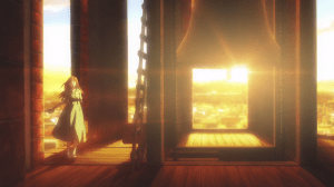 Bonus Random Thought: The more I think about Violet’s character design, the more I really like it. From how lavish her clothes are to how her face stays static the whole time, the character really does strike to you as a doll. Her prosthetic hands seems intentional too. That Violet’s sense of touch is diminished reflects her own emotional limitations — her inability to feel something.