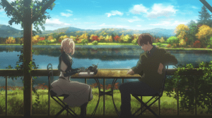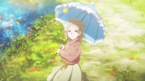 Now about that whole parasol/skipping on water scene. Yes, that is from the light novel and yes, it is pretty damn silly looking. Even if Violet had peak human reflexes (a detail that light novel was lot more insistent on), I still can’t shrug off how it looks like Violet took some cues from Princess Peach. And I’m pretty sure that if any of us tried this in real life, we’d just fall in the water immediately. I get what this scene was going for however. Violet’s physical appearance reminds Oscar of Olivia and her performing the jump allows her to both (sort of) replicate the ending of the play as well as fulfill Olivia’s promise to her father. I also can’t deny that this scene was stunning to read and watch. Violet Evergarden has consistently delivered on the visual department but this scene is especially gorgeous from its attention to detail and its use of slow motion. It’s even further accentuated by Even Call’s emotional orchestral soundtrack.