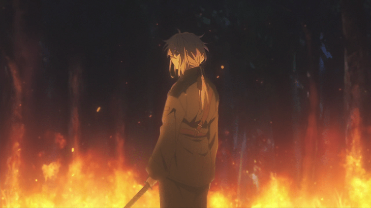 I really like the direction in this episode. Right from the start, there’s some really smart restraint on showing Violet’s facial reactions when Diethard confirms Gilbert’s death. It’s a remarkable use of “show, don’t tell”, letting Violet’s body language, Diethard’s dialogue, and our understanding of the characters to fill in the blanks. Later, when we see an example of Violet kill all those soldiers, the field of grass gets set ablaze. Not only is it a nice callback to one of the more stunning shots in the OP, it also refers to Hodgins’ statement that Violet will find herself “burning up”. Symbolically speaking, Violet world has always been burning and at the time, she didn’t even realize it. Finally, I love that KyoAni chose to end the episode right when Gilbert gets shot. Episode 1 already shows us that Gilbert ends up in bad shape and the dialogue has lately made it clear that Gilbert is dead. The abruptness in this final scene helps retain the emotional punch of the original text. Frankly, I can’t think of a better way to end this episode. What a way to go.