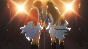 Interestingly, Mahiru gets everyone in on a plan to cover Karen and Hikari’s absence during curfew. It ultimately fails (and how it fails is hilarious) though it’s still important to note that everyone in the main cast cooperated and all welcomed our two protagonists back. It’s a good thing that this scene exists. It can be too easy to forget that these girls are all friends here. After all, it’s a completely different story when they get on a certain stage…