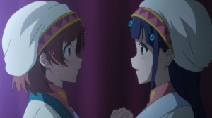 At first, you’re led into siding with Mahiru in this friendship triangle. After the events of last episode, Karen and Hikari seem closer than ever before which, in turn, increases Karen’s determination to “shine” tenfold. Karen now wakes up on time, practices by herself or with Hikari, and has taken her classes much more seriously. It’s a profound change and the fact that it was Hikari who helped ignite it makes Mahiru incredibly envious.