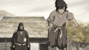 That said, everything else that followed is still really good. To start off, I really enjoyed the interpersonal drama between Jukai and his apprentice, Kaname. The latter character starts off as a devoted student only to become disillusioned when he learns that his master worked for the Lord whose onslaughts got his father killed. Naturally, Kaname wants revenge and though Jukai surrenders, he temporarily relents to let his mentor finish a prosthetic arm for a little boy. In the end, Kaname lets Jukai continue his work but not before leaving himself, even ditching the prosthetic leg he received from his mentor as a symbolic act of nonacceptance. It’s a disheartening scene to say the least, one that articulates that despite all the good Jukai might do now, his marred past will forever haunt him.