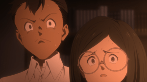 The only characters who don’t seem to have much to do here is Don and Gilda. Hell, they’re not not even present when Ray confesses his duplicity, seemingly learning the information secondhand at a later point in time. Perhaps that’s to be expected. They’re not main character tier the same way Emma, Norman, and Ray are. Still, would it kill Neverland to make them appear less expendable? When Emma deduces Isabella has a secret door in her office and Ray advises against investigating it, you just know that Don would still check it out and drag Gilda along with him. The fact that Don desperately wants to save Conny (Good job, Norman!) makes his fate seem even more impending.