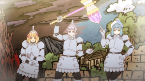 For a CGDCT adventure anime, Endro! sure is mean spirited at times. Like, it does make sense for Mao-sensei to disbelieve the gang’s tale of saving mackerels from an evil god but that’s really just one of many jokes taking a jab at the validity of these characters’ heroism. In general, Yusha and her pals are kind of treated as a joke or at the very least, not the first people you’d think would one day save the world. Hell, just after Yusha and her pals are told they need to redo their assignment, Yusha discovers her sword has rusted. Presumably, that has occurred from all the recent adventuring near and at the ocean but the sight does give the impression that Yusha isn’t exactly legendary material.
