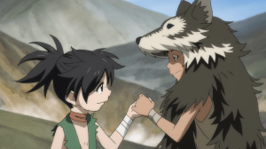 There is still a personal angle taken with the plot though. The guest character of the week, Saru, tries to stop Nokosaregumo as the latest sacrifice is a woman who he a sisterly figure in his life. It’s his motivation that compels Hyakkimaru and Dororo in offering to help. The chemistry Dororo has with Saru also keeps things engaging. Those two share a number of characteristics such as the fact they’re societal outcasts, have lost their families, and try to keep a positive attitude in spite of their hardships. You get the impression that Dororo has found someone he can relate with 100% which makes his friendship with Saru believable.