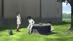 I can only imagine the kind of cliffhanger puns people were making after this episode aired but in all seriousness, it is quite the shocker to learn that the walls are surrounded by a deep ditch. It sounds so simple in hindsight but then again, the thought wouldn’t necessarily come to mind, either for the viewer or even the characters. The wall alone is already a foreboding obstacle to overcome. To me, this ending really sells the bleakness of the situation more than the previous episode. Isabella used force but at the end of the day, she is technically just one bad guy. Emma, Norman, and Ray still hoped to see what lies outside the walls and manage to bounce back. Finding out that the walls are practically cliffs effectively tears down everything the escape had planned for. I suppose it’s a good thing they investigated first but darn, I’m left wondering what other route they can possibly take.