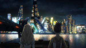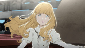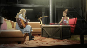 Oddly enough, Carole & Tuesday is actually set in the distant future on a colonized Mars. It kind of feels a little random; I think you could’ve easily have set this story in, say, New York or California. I suppose the more sci-fi themed setting is meant to allow Watanabe and his team better explore the show’s music theme. You are given a glimpse here as also introduced in this episode is Angela (Sumire Uesaka/Alisa), a child actress who aspires to be a singer. After shooting for a commercial, she meets Tao (Hiroshi Kamiya), a music producer who mostly produces music with A.I.s but is hired to make an exception with Angela. I’m assuming the idea is that Angela is selling out and becoming a “puppet” to fulfill her dream which could potentially contrast with the free-spirited, rock bottom beginning that Carole and Tuesday have. I can see that working as the first major conflict in this show’s story.