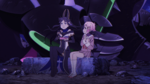 If it sounds like I can’t talk in great detail about the plot, that’s honestly because the premiere is very light on it. Within its very first scene, Granbelm shoves its protagonist, Mangetsu Kohinata (Miyuri Shimabukuro) into the magical dimension without much warning or foreshadowing. Although the ball immediately gets rolling as a result, it does feel too sudden. How and why Mangetsu gets transported is left a mystery and you know very little about her character apart from the fact that she has average cooking skills. Having her all clueless does allow the viewer to relate with her but it also leaves a lot of details in the dark. Who exactly is Shingetsu (Atsumi Tanezaki), the mage who befriends Mangetsu? Who exactly is everyone else fighting in the royale? I’m sure the show will elaborate sooner or later but elaborating now would’ve been nice.