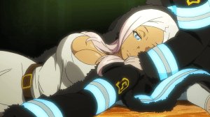 I don’t really mind that Hibana turns over a new leaf (that’s not a pun, is it?). Bad guy becoming good guy by getting hit really hard is a standard development in shounen stories. It happened in Soul Eater so why not have it happen here. I’d say it’s for the better too. Hibana acts so cartoonish as a villain that it doesn’t seem viable for long-term antagonism. At least the shift makes sense. Iris immediately reconciling with Hibana is a no-brainer. She always wanted to believe that there’s good in her sister. The sudden crush on Shinra is a little out of the blue but I like that Shinra’s claims of heroism makes Hibana gain a new kind of faith, the kind that’s directed towards people.