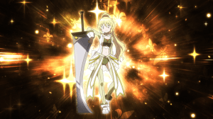 - Momoko – Literally fires herself up, fitting given that her sociable and energetic personality as well as the fact that she’s the fighter in her clique. I also just really like that she kicks her sword while it’s hot in order to finalize its design, as though the one the magic provides isn’t to her liking so she’s adding her own touch to it.