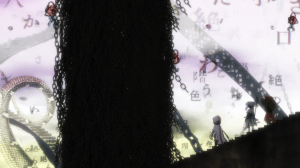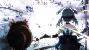 I mean, you’ll have to pardon me if I sound unimpressed but I couldn’t care less about Rena and Kaede. Madoka certainly had its fare share of friendship drama but that stuff worked in tandem with the lore and tone, personalizing and giving an emotional element to the latter two elements. Here, my only takeaway is “friendship good”. The drama and reconciliation between Rena and Kaede doesn’t seem serve no greater purpose. Maybe that could’ve been fine but the set up from the previous episode was generic and here, the follow up provided here is as predictable as you’d expect. They reunite, they reconcile, and they beat up the witch of the week together (or I guess it isn’t a witch, apparently). The only surprise to come out of this plot is the fact that no one dies during it (and call me cruel but it’d be more interesting if someone did).