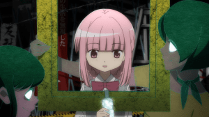 For someone searching for her missing sister, Iroha sure isn’t in a hurry. Her next course of action after the Seance Shrine proved to be a dud is simply sightseeing around Kamihama and maybe a clue will pop up. I know it’s not like she has a lot of leads to work with and there’s a crap ton of rumors and Uwasas (the new name Yachiyo gives to the not-witches) but surely, she could think of something better to do with her time. Why not go through Yachiyo’s research book and see what rumors might best fit her case? What happened to investigating Toka and Nemu? You’d think Iroha would look more into them but no, she’s practically forgotten about them. Then again, I suppose Iroha could use a breather. She apparently doesn’t remember much of last episode (Yachiyo, why are you keeping her in the dark?) but it still happened so a break is warranted.