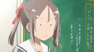 The ironic thing about Karin’s introductory episode is that despite being the one with the most combat training, she actually doesn’t fight a whole lot here. Much of the episode involves her reluctance about joining the Hero Club and being friends with them. In fact, her talk of being more powerful compared to everyone else is kind of treated as a joke. When Yuna points out that she has one fairy and Mimori has three, Karin stubbornly insists that she only needs one. She also tries to make a big deal about her fairy’s ability to talk though it’s implied that the fairy really only parrots whatever catchphrase she taught it. Later, we have a scene where Karin explains that heroes can gain experience and level up in a phenomenon called “Mankai”. Presumably, that’s what everyone’s emblems have been hinting at. When asked if she’s experienced Mankai, Karin is forced to admit that she hasn’t, much to her embarrassment. Fuu then jokes that for all intents and purpose, Karin is at Level 1 like everyone else which causes Karin to brag about her bases being higher.