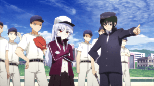 I only have one complaint about the baseball scenario: you don’t get to see Tenshi play. Yes, the superpowered girl who can distort physics just sits in the bleachers, presumably acting as her team’s manager given the way she’s dressed (and I won’t lie, she is rocking that cap and jacket). I guess since she’s a model student, it wouldn’t make sense for her to use her Guard skills to win the game. In her mind, that’s probably cheating. Still, I can’t let go of what a missed opportunity it is.
