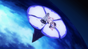 The ones that resonates most in this episode however are Yuna and Mimori. There are some really heartwarming moments involving these two in this episode. As they fly off to space, they stand side by side, something they can’t do in their civilian forms. Despite using up her Mankai, Mimori still stays behind long enough to catch Yuna after she defeats the Vertex. As they fall back to Earth, they hold hands, practically accepting that they may die together. All this does bring a very intimate angle to their relationship. I don’t want to hold my breath on any actual romance. I’ve seen enough magical girl anime to know that there’s a good chance that the yuri subtext will remains as subtext. Even so, this episode does a superb job showing how much these two mean to each other.