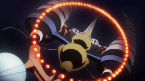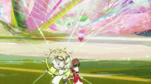 It goes all out with the action. For starters, the heroes have to fight all remaining seven Vertexes all at once and the numbers aren’t the only issue. They send in a decoy, combine into one giant Vertex, and they even secretly send in a scout to the magic tree while everyone isn’t looking. That one combined Vertex even screams “Final Boss” with its brutish power and its soul being so huge, it floats in goddamn space! Conversely, the heroes counter by unlocking their Mankais. I would’ve been fine with just Fuu’s but as it turns out, everyone but Karen (poor girl) unlocks theirs for the battle.