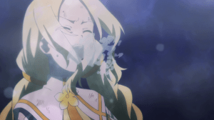Also look at her reactions at the end, right after Yuuna and Togo crash back to earth. She’s genuinely concerned for them, and cries in relief when everyone is revealed to be unharmed.