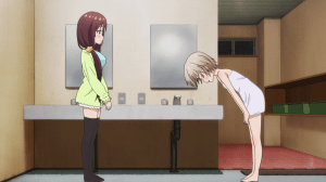 That notion does make everyone look rather selfish. They don’t try to help Yuki because of the potential damage they could cause but they’re also letting it be so that they can use Yuki’s attitude to better deal with their predicament. I doubt that’s done on purpose, everyone clearly and genuinely care about Yuki, but it does seem like something they’re doing subconsciously and I wonder if it’ll be acknowledged. Hell, maybe that’s actually why Yuuri acts the way she does during her confrontation with Miki. She smiles to hide her awareness and shame and she asks what could get better because she concedes that Yuki livening things up with her hijinks is the best life is going to get.