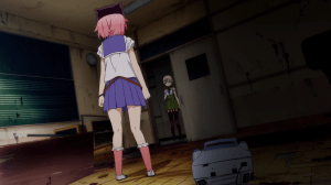 So yes, Megu-nee has been dead all along and the one we’ve following for most of the show is one of Yuki’s hallucinations (the most prevalent one too). The episode provides a flashback on what happened. The School Living Club found themselves in a perilous situation and Megu-nee deliberately locked a door to save her students, sacrificing herself to the horde. As for her injury, I’m assuming that was by a zombie which would imply that Megu-nee also locked herself out so she wouldn’t risk becoming one and attack her students. There’s no explicit confirmation that this is what made Yuki snap but it’s likely to the case. If true, that’s insanely twisted. The person whom Yuki looks towards for guidance and support is also the catalyst for Yuki’s coping mechanism.