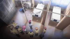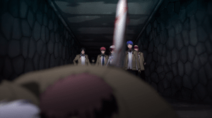 Once again, hijinks ensue in old Guild. The traps are as they were since Episode 2 though that hardly matters as the gang must confront multiple Kanades. Everyone gets picked off one by one again though they all intentionally die this time around, taking a hit so they can pin a Kanade to the floor and allow everyone else to move on. I remember finding this all really funny back then but watching it now, it didn’t hit me nearly as much like it did before. For one, I find it hard to believe that the strategy actually works. Kanade is a petite girl but that’s a moot point considering one of her Guard skills grants her superhuman strength. Last episode, she sent Takeyama blasting off like Team Rocket. Here, she can’t push aside a person on top of her (that doesn’t sound right)? Second, the gag is pretty repetitive. Whereas the Guild traps were varied and allowed for characters to die in different ways, everyone just gets stabbed in more or less the same way. I will say that the last couple of variations are the best ones however. Otonashi guilts Naoi into sacrificing himself after hypnotizing Oyama to do the same. Yui forces Hinata to take one for the team and yet mourns for him afterwards. Even better is that despite actually surviving all the Tenshis, Yui still bites the dust before the final fight.