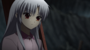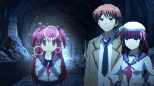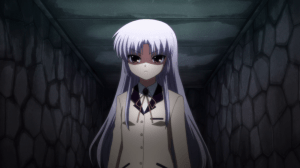 This is admittedly because of hindsight but I find myself very disappointed with how Angel Beats! resolves this whole clone fiasco. At Otonashi’s urging, the original Kanade uses Harmonics again, this time with the counter Yuri programmed in. To his horror however, a new clone reveals that reintegrating the clones means fusing their individual personalities into the original’s body. Not only does this cause severe pain for Kanade, it also implies that the hostile clone personality could become the dominant one in her mind. For me, there is so much potential with this consequence and it could’ve been the most interesting thing done with Kanade’s character. The clone persona could stay as a villain for at least another episode. Maybe reveal that the clone’s hostility actually stems from pent up feelings about the SSS opposing the original. The different personalities wrestle for control of the body. Have Otonashi help her out by reminding her how much she’s grown to enjoy being with the SSS, especially with him. That’s what I would’ve liked to see. But as revealed in the next episode, that’s not the direction Angel Beats! takes.
