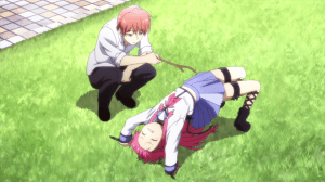 Maybe it’s a little surprising that Hinata offers to marry Yui. Much of their screentime together has been them bickering and beating each other up. An argument can certainly be made that there should’ve been more screen time depicting them actually caring for each other underneath all the noise they make. Even so, there is no denying Hinata and Yui are very close to one another so watching the former say that he’s actually in love with the latter and will gladly fall in love with her in the next life regardless of the odds or whatever handicap she has still works to good effect. It just feels right that Hinata is the one who proposes.