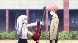 Otonashi and Kanade make a fun team here. The former acts as the planner while the latter follows the instructions to the letter, sometimes to a fault. Here, Otonashi wants Kanade to confiscate Yui’s guitar so that he can better approach her about her regrets. The plan works though some hiccups do occur such as Kanade initially showing up with guitar in hand but no Yui in hot pursuit and when she sends the guitar up in the air due to her super strength. It’s an entertaining routine. I just wish it happend more often in the episode and the show as a whole. You get one more moment where Kanade secretly helps Otonashi with the soccer game but that’s about it. Surprisingly, Kanade isn’t terribly present in this episode.