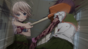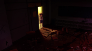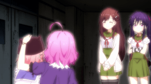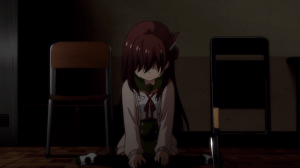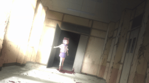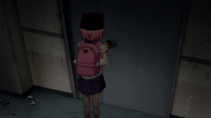The penultimate episode marks a turning point for Yuki as she recovers her memories and sees things for what they actually are. What I love most about this development is that it’s not an instantaneous 180. She recognizes the zombies (how dare you not show her fair share of shovel wielding) but the midpoint strongly suggests that she still wants to hold onto her vision of the world and, more importantly, Meg-nee. The world she manages to let go of first, realizing in a daydream that staying in there may cause her to lose the friends that are still alive and she needs to act. But even with that veil lifting, she still envisions that Megu-nee is alive. That is, until she reaches the door she needs to open, the same door Megu-nee locked herself in.
