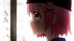 If you want to argue technicality, I suppose that yes, it is Yuki who convinces herself to come to terms with what happened in the past. But honestly, I do think that it is actually Megu-nee who helps Yuki in the end. If not the real person, certainly the concept of her. I don’t think there’s any denying that what the fake Megu-nee does here is what the real one would’ve done anyway. And as for the final, inaudible words Megu-nee says to Yuki, I don’t think it really matters what exactly they are. The point is that Yuki heard right words to spur her into opening the door and finally reconcile with the past. Maybe School-Live! will somehow give Megu-nee one last appearance but I would be more than content if this ending is the last we truly see of her. She walks away from the door. Yuki stands on the bloodstain left by her sacrifice, crying but also finally parting ways with her teacher. It feels like the perfect exit for this character.