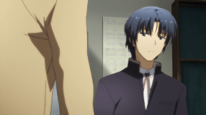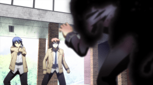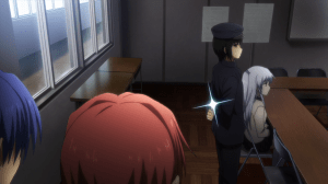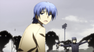 In the interest of fairness, I will say that the concept of the Shadows is great. They’re monsters that turn their targets into NPCs, rendering them subservient to the world but also denying them the one thing they’re supposed to gain in the afterlife. You see this demonstrated with Takamatsu. It’s creepy, making the afterlife the purgatory that it really is. Furthermore, it throws a serious wrench to the SSS’s operations, their days now numbered. That’s the odd thing with Angel Beats!. I can’t deny that it rushes through its plot elements but whatever execution it manages to pull off has been pretty respectable.
