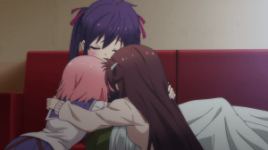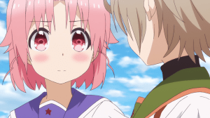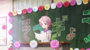 It’s not just speak. You can tell that Yuki takes her own words to heart. She approaches Megu-nee’s grave, even ties her uniform’s ribbon around it to replace Megu-nee’s (which flew away last episode). Before this point, she would’ve ignored that grave entirely. During the graduation ceremony, Yuki gives a speech and breaks down and cries in the process. Not only does it show her sadness to leave the school for good, it also shows that she’s not going to hold back said sadness as feeling that way is now important to her.