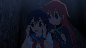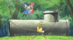 This isn’t to say Flip Flappers is bad at telling its story however. I didn’t notice this the first time around but the show exercises “show, don’t tell” quite well. By visuals alone, you can easily see the contrast between Cocona and Papika. Cocona lives a mundane life, unsure of her future and trying very hard to act mature. Papika is clearly living for the adventure with not much a care in the world. Additionally, the show conveys Papika’s interest in Cocona visually. She follows Cocona around, initiates their first meeting, and risks her life to retrieve Cocona’s glasses as she notices they’re important to her. We’ll see about the writing but the visuals do seem to be doing a solid job with telling the story.