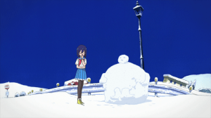 Speaking of the visuals, these are some top notch stuff on a technical level. That’s the one thing I remember about the show and it seems to still hold true. There’s some really gorgeous scenery to be found here, be it from the streets of Cocona’s town to the rubble she finds in the middle of the woods to the winter wonderland she and Papika stumble upon in Pure Illusion. Cocona and Papika are very expressive with their faces and body language. The action is stunningly animated and in traditional fashion to boot with no trace of CGI to be found (and if there is CGI, this animators did a darn good job hiding it). All in all, this is definitely a studio’s A-game. I don’t know if 3Hz still has it in them, their most recent shows have frankly looked pretty underwhelming, but if they get cracking again, I hope that work looks as visually arresting as this.