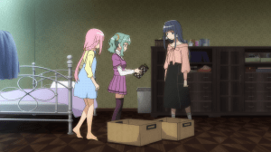 Seeing everyone at the villa chill out and enjoying each other’s company has Sana wondering what her family has been up to. So, she pays her home a visit. I expected the show to reveal her family misses her now but it turns out that the most they’ve done for her is leave food at her door. They haven’t noticed she’s disappeared and remain happy without her. A nice detail is how they’re stylized as mannequins because really, they might as well not be real people to Sana. It sucks for Sana but I think the writing makes the right decision here. That family is rotten to the core and while second chances are nice, I’d rather have Sana more convinced to be rid of them. Sana wants a family and her real one isn’t the one she seeks or deserves. She’s better off looking towards people who will welcome her, something which Iroha and the others are more than willing to offer. Admittedly, Sana doesn’t really know any of them but then again, this is obviously only the beginning for her and them. Time will eventually fix that.