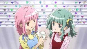 The B-part of the episode fares much better for me. As Sana tries to get accustomed to living in Mikazuki Villa, Yachiyo finds some old mugs that belong to her and her previous roommates. Inspired, she decides the whole group should go shopping for new mugs as a show of solitary and to help Sana feel welcomed. It’s a definitely cute scene as the characters ponder on what to get and the store they browse in is exaggeratedly designed (like any location in Madoka) with shelves upon shelves of unique mugs. That I enjoy this more than the action earlier says something about Magia Record but I’ll take it.