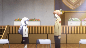 Surprisingly, when it come down to just Otonashi and Kanade, neither character disappears just yet. What instead happens is that Otonashi takes Kanade outside and suggests that the two of them should remain in the afterlife indefinitely and help anyone struggling to move on. He also admits that he wants the two of them to stay because he’s fallen in love with her. While Kanade appears to reciprocate those feelings, she reveals that it’s because she does that she’ll disappear. As it turns out, Otonashi’s heart was used as a donor for a transplant and Kanade was the recipient. Her one regret in life was the inability to thank whoever it was that helped her live, even if just for a little bit longer.
