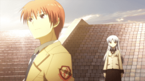 It’s the post-credit scene that prevents the show from ending on such a heartbreaking note (yes, I realize what I did there). We seemingly return to the real world. A girl resembling Kanade stands idly by, humming a very familiar tune. A boy resembling Otonashi stops in his tracks when he realizes the girl is someone he vaguely recognizes. As the girl walks away, the boy approaches her and the scenes fades to white, ending Angel Beats! on an ambiguous but otherwise uplifting tone. I couldn’t think of a better way to end this series.