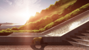 First off, this reveal cleverly explains the title, Angel Beats!. The “angel” is question is obviously Kanade while the “beats” refers to the beating of her heart, the one Otonashi gave her. Second, it’s admittedly been years since I last Angel Beats! but goodness, I forgot how much of a tearjerker this reveal is. With Kanade, Otonashi seemed to be the one person who wouldn’t disappear before her but as it turns out, she’d be the one to disappear instead. For Otonashi, the first person he helps is the one he doesn’t want to leave. Furthermore, this is yet another moment where he finds something to be happy about it, only for it to escape his grasp. The scene gets heavier as it goes on. Kanade urges Otonashi to say that he loves her one more time so that she has the push to thank him and fulfill her one regret in life. Even though Otonashi doesn’t want to risk it, he nevertheless obliges because he loves Kanade and this is what she wants. The direction really pulls through here with a different version of “My Precious Treasure” playing throughout the whole scene here, the sunset filled backdrop, and Kanade disappearing with no warning at all.