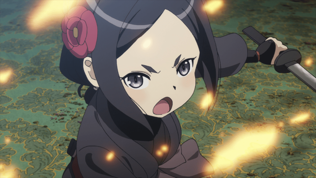I’ll admit that I saw the twist that Jubei is Chise’s father all along coming a mile away but it does work in further developing Chise’s character. By making Jubei the father, PriPri creates a very personal dilemma. Chise has her reasons; she’s dutybound to protect her Lord and it’s mentioned that Jubei is no longer the same man who raised her after becoming an assassin. Nevertheless, Chise still kills her father and despite steeling herself for that, the reality does sink in after she buries him, It’s something to keep in mind as that conflict between her duties and her personal feelings does reappear later in the series.