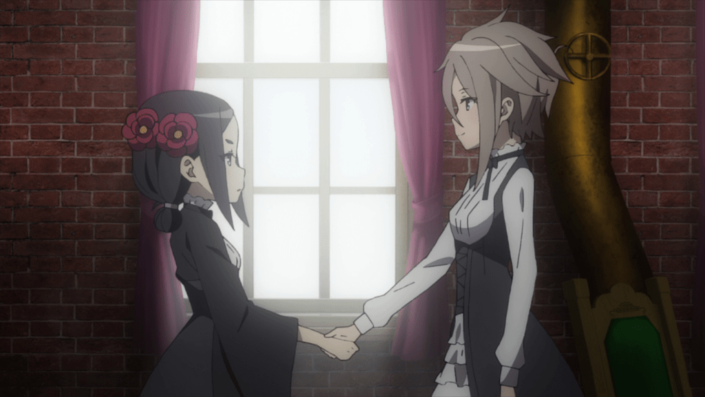 Naturally, this episode concludes with Chise joining the soon to be named Team White Pigeon as part of an agreement with Horikawa and Control. The scene does feel a bit strange to watch as this plays after Episode 4 (which takes place after Episode 5) dropped the detail that Chise is a double agent for Japan. It’s also kind of surprising that Ange doesn’t even suspect anything with Chise joining the team. Helping keep Princess safe would certainly go a long way but even so, Ange seems smart enough to recognize the political implications. I suppose she does to a slight degree given her actions in Episode 4 though there’s little indication that she specifically suspects Chise’s true purpose. Plus, she clearly doesn’t suspect anything bad from Chise if she assigned her as Princess’s bodyguard. Even so, the tone of the scene is explicitly positive with Ange actually being the first to welcome her aboard and Chise happy to become part of the team.