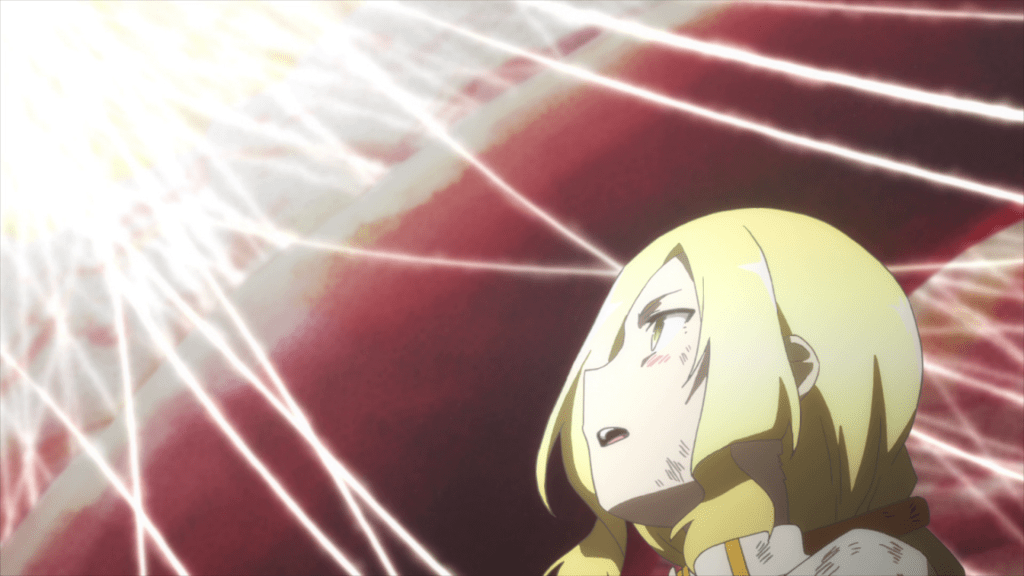 A clever detail within the Shinkon ceremony is how Yuna’s corporeal form and her spirit react differently to Togo’s arrival. Corporeal Yuna insists that she has to go through with the ceremony and save everyone but spirit Yuna is shown reaching out to Togo for help, thereby showing how Yuna truly feels internally. Eventually, corporeal Yuna comes around and externally admits her fear of dying and desire to be saved from her fate. The whole scene just perfectly resolves Yuna’s arc. Yuna is an incredibly selfless person but this season has made it clear that she can be that way to a fault, trying to handle her problems on her own. To see her finally be honest with herself, be a little selfish for a change, and seek the help she deserves but previously denied makes for a really satisfying and emotional scene. Yuna’s arc has been so good this season. I really liked her back in Season 1 but I’m so glad that she’s a more dynamic character this time around. This has easily been my favorite part of Season 2.