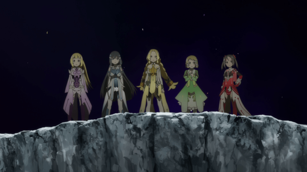 What really confounds me is how Togo breaks Yuna free. After the Shinju prevents them from reuniting, Togo receives aid from the spirits of all the past heroes (as well as the Hero Club’s but I don’t know how that works). A number of questions arises. How do these spirits show up? Who’s the blue crow that joins them? I guess it’s another hero since it transforms into one…but who is that hero and why should I care about who she is? My only guess is that all these characters are cameo appearances from the spin-offs materials. If that’s the case, that’s a neat nod for the diehard fans…but I can’t help but feel a little annoyed that I may have had to do some homework here.