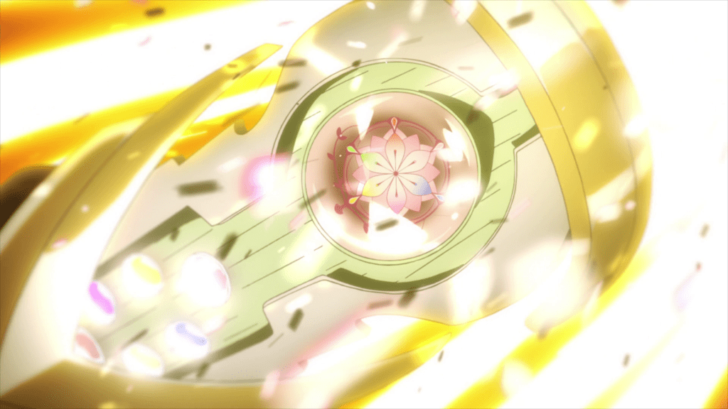 I can’t but find it a little funny that Yuna gets an upgraded Mankai as I randomly wondered to myself if another level of that power would appear when I covered Season 1. Joking aside, I absolutely love Yuna’s new Mankai design. The giant arms were great but I think I prefer the smaller albeit still large gauntlet Yuna now dons. The added colors of green and gold mix really well with the pink and white scheme Yuna originally has and conveys the power gifted to her by the Shinju. By far, the best detail though is how the orbs on her back ornament have the same colors as her friends’ Hero form, conveying that Yuna’s strength isn’t just from the Shinju but also her friends.