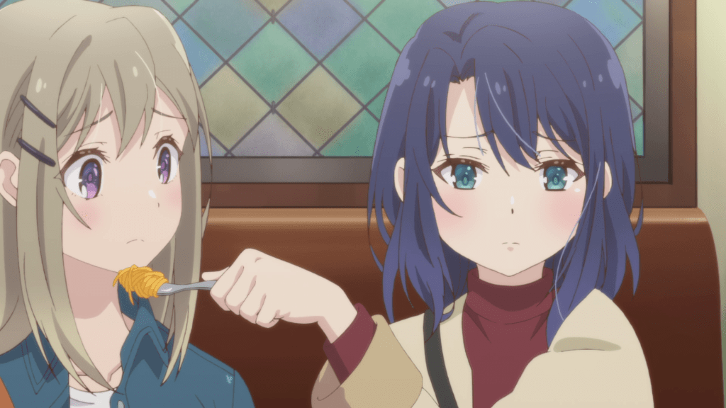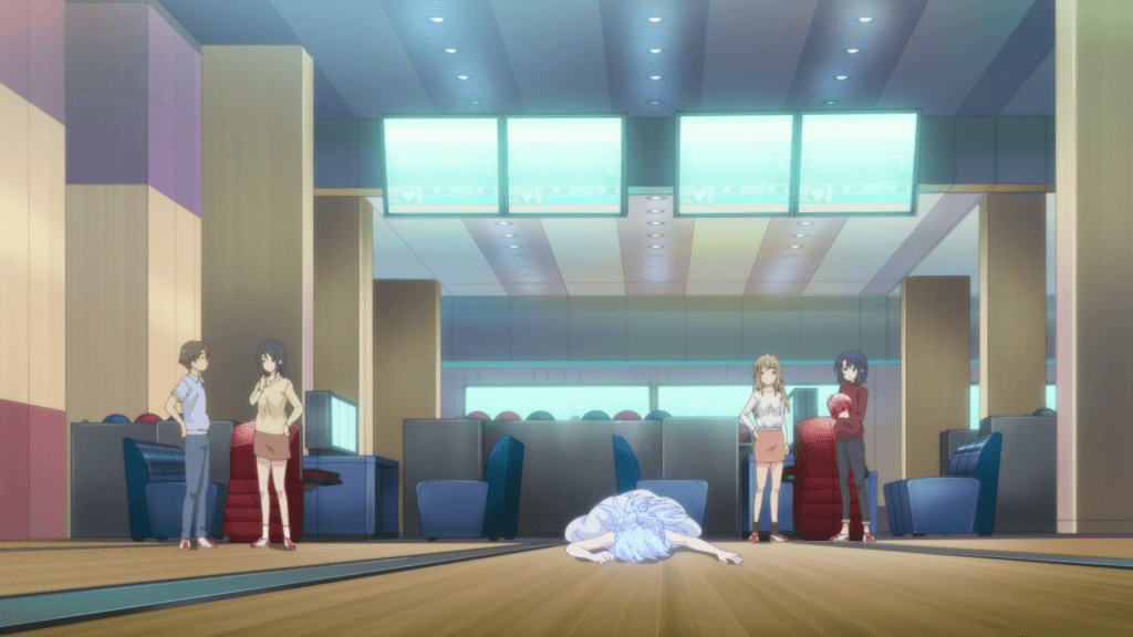 It’s Shimamura who remains as ambiguous as ever. Clearly, she cares about Adachi as she visits her home when she thinks her friend is sick and encourages her to stay despite Yashiro butting in. But does that amount to romantic attraction? It’s hard to tell. There’s also the ending to consider. Yashiro and Adachi ask Shimamura who she’s rooting for during a game of bowling and it’s implied that Shimamura does not give a straight answer. While it’s fair of her to not pick a side, I do kind of wonder if her not pampering Adachi imply how she wants their relationship to be. After the hangout, Shimamura inner monologues how taxing it is to be with Adachi but she’d rather spend time with her than be bored and alone. That implies that she’s using Adachi and that may not speak positively of herself should she find out how attracted her friend is to her. Conversely though, Shimamura expresses how the last thing she wants is for things to go south and Adachi to hate her so evidently, she does indeed care about her friend.