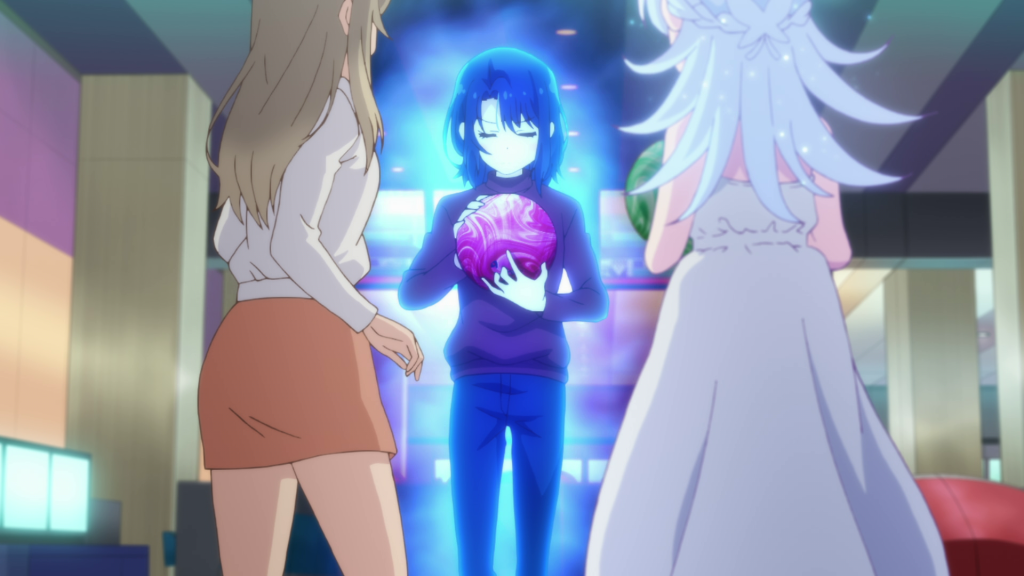 Okay, so Yashiro does reveal her face. Maybe it really wasn’t ready in Episode 2. And wouldn’t you know, she looks very similar to her counterpart in Ground Control to Pyschoelectric Girl. Part of me can’t help but think Adachi and Shimamura actually makes it more obvious that Yashiro may actually be what she claims to be. The glow and sparkle effects on her hair are very pronounced. I don’t recall them being that way in Ground Control. Then again, my memory of that show is really fuzzy (I should really find the time rewatch it).