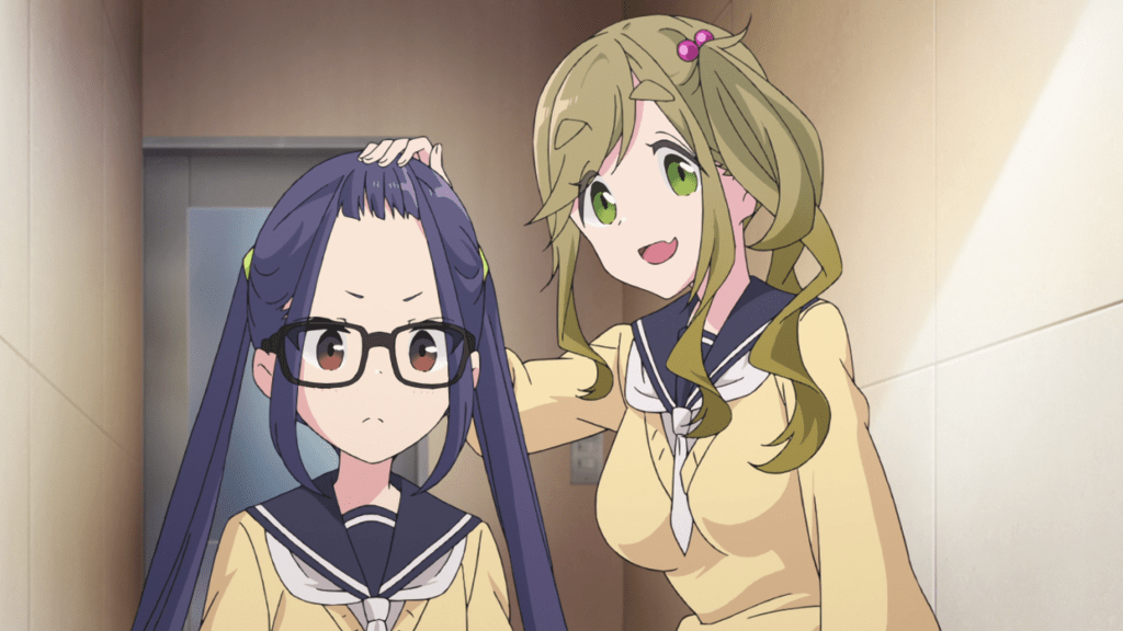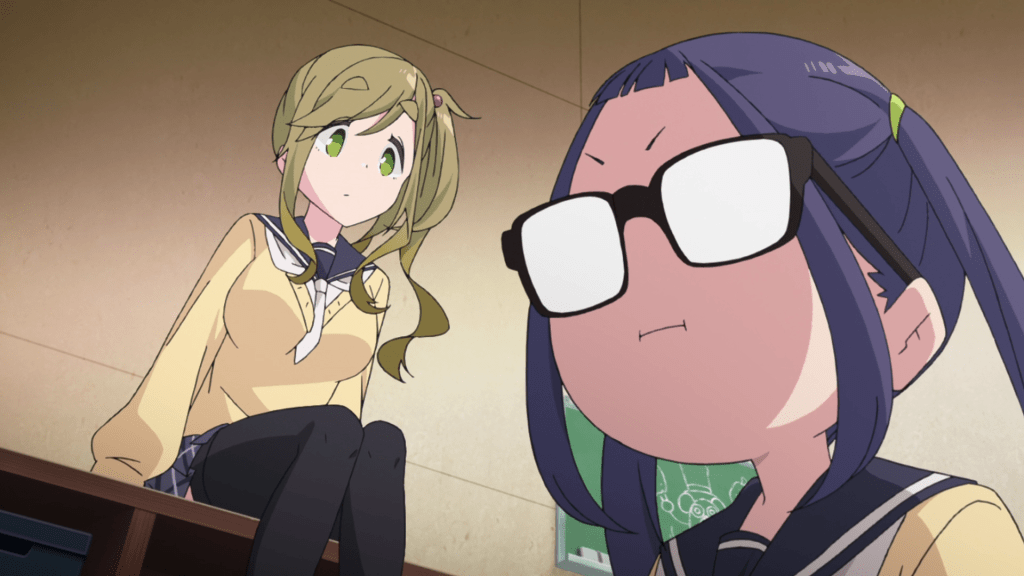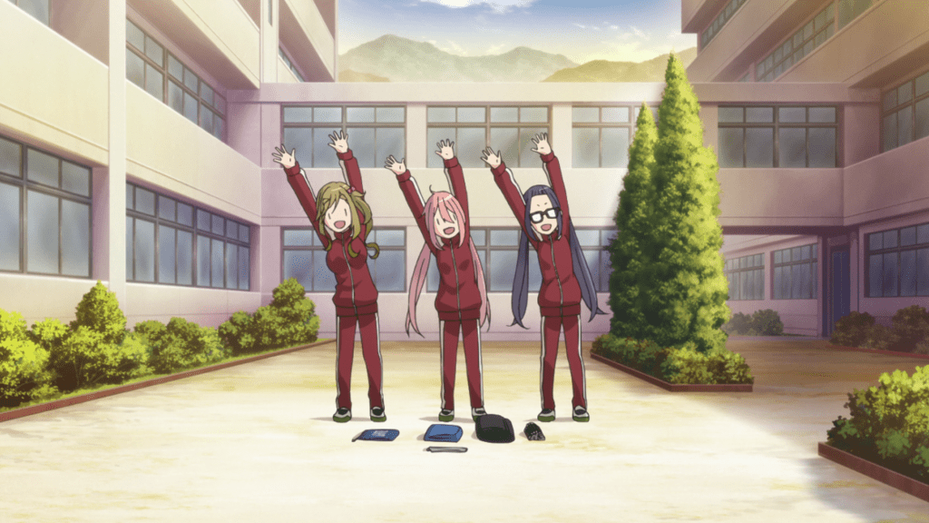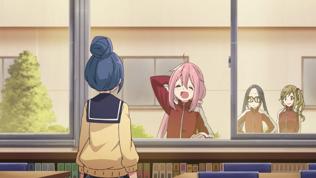 You’d think with Nadeshiko attending the same school as Rin, the two of them would bump into each other from get go. Oddly enough though, it takes a while for them to reunite as the two girls seemingly keep passing by each other without the other noticing. In the meantime, Laid-Back Camp has Nadeshiko meet Chiaki and Aoi and join the Outdoor Activities Club.